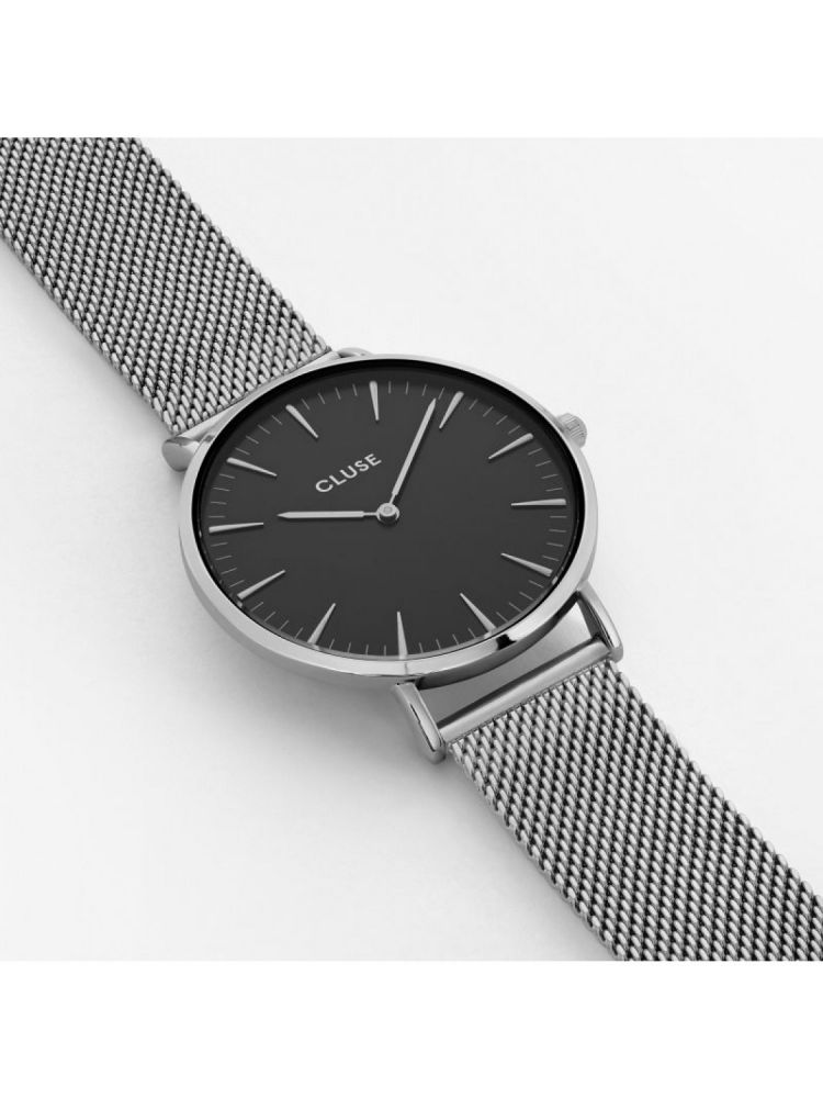 Ranke zilverkleurige metalen kast. Sierlijk zilveren mesh bandje. Zwarte wijzerplaat, volledig uitgevoerd in minimalistisch zwart. Raffinement viert hoogtij met een heerlijke duistere twist in authentieke pracht. Een mix van chic en elegant die van elke gelegenheid iets bijzonders maakt. Verpakt in een grijze kunstleren etui. Net zoals bij al onze horloges uit de Boho Chic-collectie kun je dit horloge gemakkelijk personaliseren met alle leren of mesh bandjes uit de Boho Chic- of La Roche-lijn.