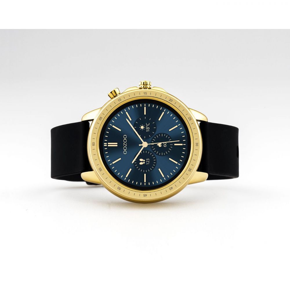 Let's get digital! met de gloednieuwe OOZOO Smartwatches. De smartwatches van OOZOO's allereerste digitale collectie hebben een rond design en zijn unisex. Deze horloges hebben bij iedereen de perfecte fit. Het horloge is comfortabel om te dragen met een 45mm goud metalen horlogekast. De zwarte rubbere band is verstelbaar, maakt dit horloge tot een betrouwbaar accessoire. Kies een van de kleurrijke opties en stel jouw digitale wijzerplaat in. Alle smartwatches zijn IP67 gecodeerd en zijn nickel-safe.