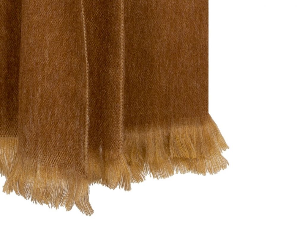 DE DIEPE KLEUR VAN DEZE SOLID SJAAL IS IDEAAL VOOR KOELE HERFSTAVONDEN. MISSCHIEN WEL OCHER, MAAR WEL ONZE NUMMER ÉÉN.
