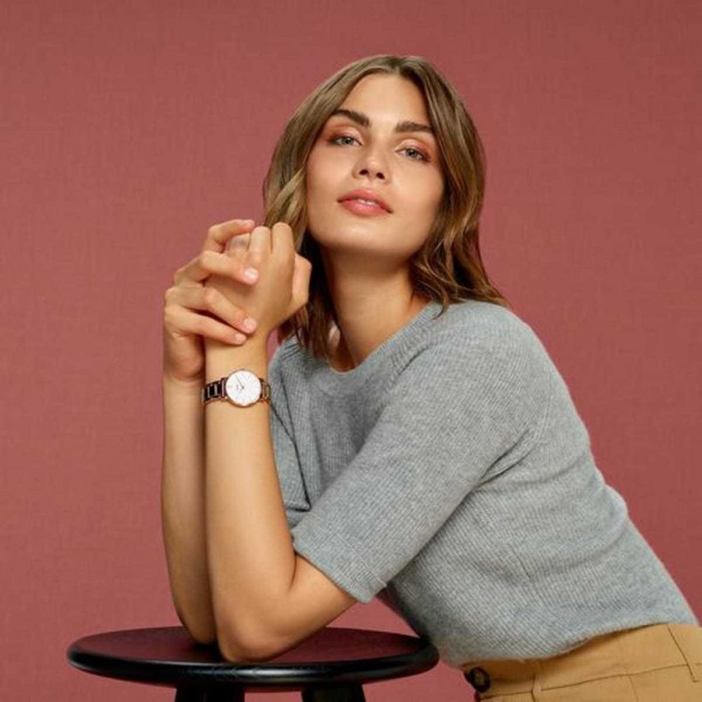 Onze Minuit collectie doet denken aan een fonkelende sterrenhemel en elegante avond looks. Het delicate ontwerp van dit stijlvolle horloge maakt het een perfect accessoire voor een fashionable, maar subtiel resultaat. Het horloge heeft een klassieke, witte wijzerplaat en een gepolijste, roségoudkleurige schakelarmband. De horlogeband kan vervangen worden door iedere band van hetzelfde formaat.
