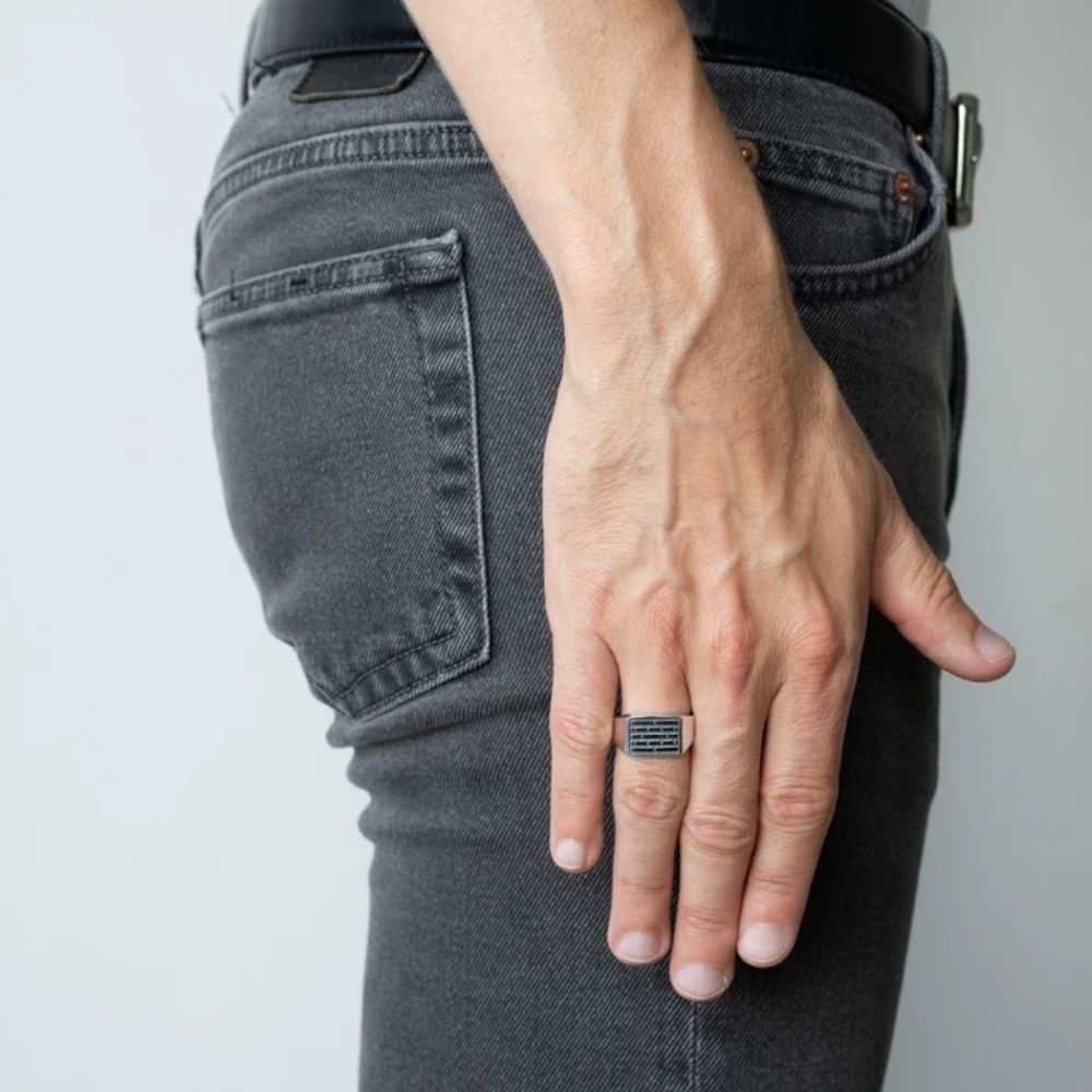 Featuring the famous brick design print of the Amsterdam Canals, this minimalistic designed signet ring is a perfect basic for your everyday wear. The solid silver band ring is made of 925 sterling silver. To highlight the brick print black oxidation was used. The ring is polished inside and out, which makes it a comfortable piece to wear.